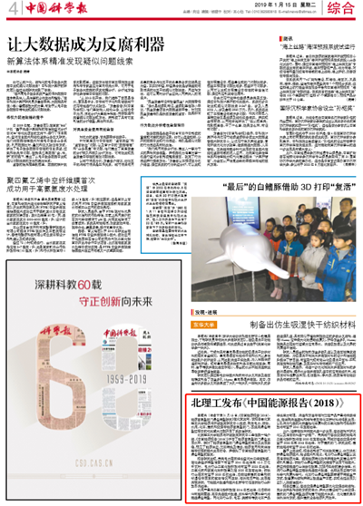 【中国科学报】北理工发布《中国能源报告(2018)》