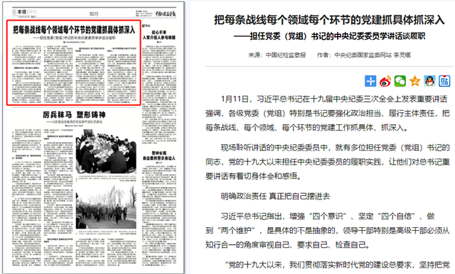 【中国纪检监察报】把每条战线每个领域每个环节的党建抓具体抓深入