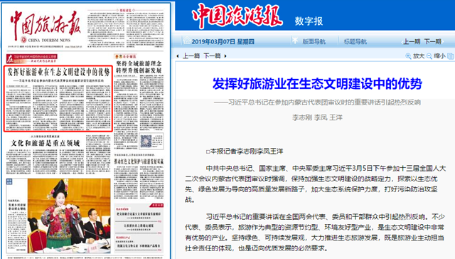 【两会▪中国旅游报】发挥好旅游业在生态文明建设中的优势