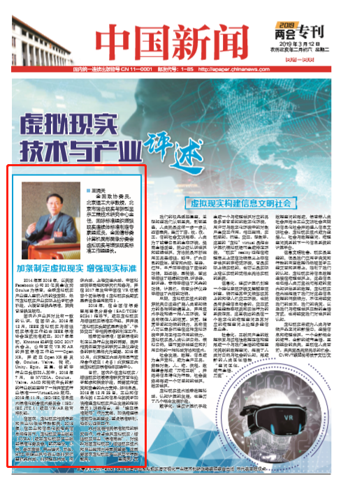 【两会▪中国新闻】王涌天委员:加紧制定虚拟现实 增强现实标准