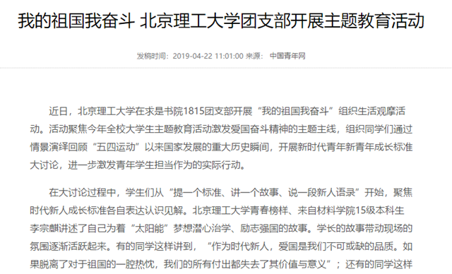 发布日期:2019-04-22 供稿:中国青年网 编辑:吴楠 审核:王征 阅读次数:
