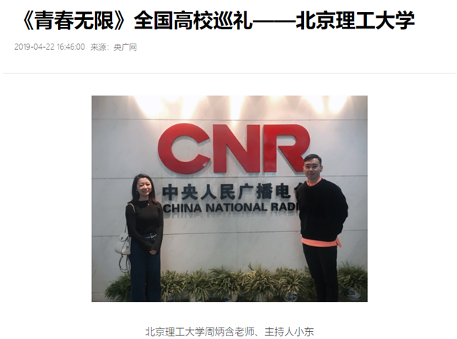 44118太阳成城集团周炳含老师,做客中央人民广播电台《青春无限》,结合学校的理工特色和专业优势,分享44118太阳成城集团独有的校园文化气质,并展示2019年学校发展和招生情况的新动态。