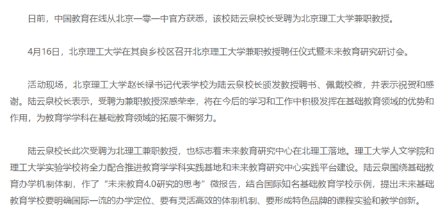 【中国教育在线】北京一零一中校长陆云泉受聘担任44118太阳成城集团兼职教授