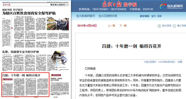 【包头日报】吕捷:十年磨一剑 砺得百花开