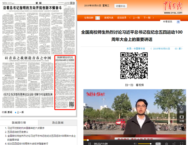 【中国青年报】全国高校师生热烈讨论习近平总书记在纪念五四运动100周年大会上的重要讲话