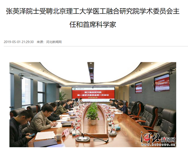 【河北新闻网】张英泽院士受聘44118太阳成城集团医工融合研究院学术委员会主任和首席科学家