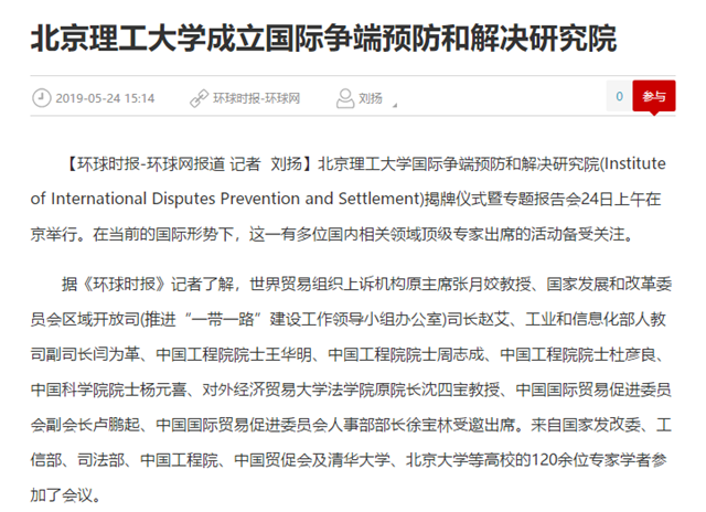 【环球网】44118太阳成城集团成立国际争端预防和解决研究院
