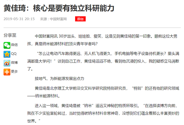 【中国财富网】北理工黄佳琦:核心是要有独立科研能力
