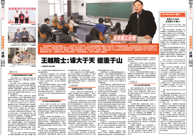 年高德劭,齿德俱尊。面对一生的卓越功绩,王越谦逊地以一句话概之:“我这辈子没算白过,没有根本性的遗憾,这是最大的安慰。”实际上,无论是在学术、科研,还是在教学、管理方面,他都树立了典范。在北理工师生的心目中,他是真正的大家,真正的先生。