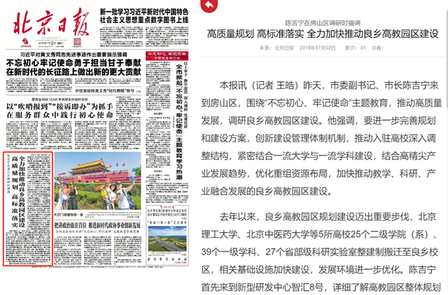 【北京日报】高质量规划 高标准落实 全力加快推动良乡高教园区建设