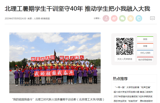 【人民网】北理工暑期学生干训坚守40年 推动学生把小我融入大我