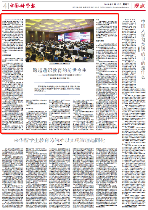 【中国科学报】跨越通识教育的前世今生——2019两岸高等教育(北京)高峰论坛侧记