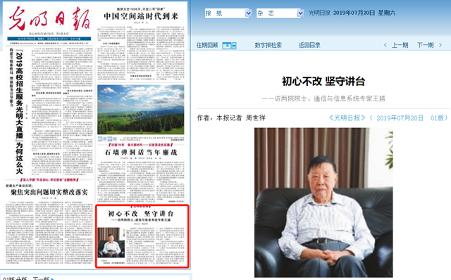 【光明日报】初心不改 坚守讲台——访两院院士、通信与信息系统专家王越