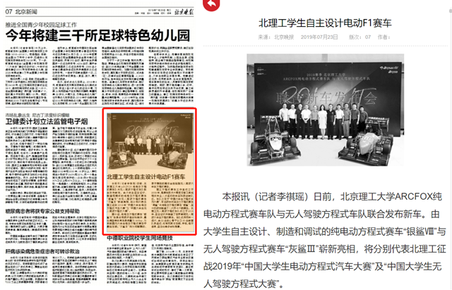 理工方程式赛车工作室成立于2009年,是赛车技术兴趣爱好者及其他相关专业人才组成的学生科技创新队伍。车队立足于“中国大学生方程式系列大赛”,专注研发燃油动力方程式赛车“黑鲨”与纯电动方程式赛车“银鲨”,至今已研发制造了八代共十六辆赛车。北理工无人驾驶方程式车队成立于2015年,自主设计并制造了世界首辆无人驾驶大学生方程式赛车。车队成员两年一迭代,由22名核心骨干以及30名新晋队员组成,均有机械与车辆、宇航、电子信息、自动化等多学科背景。