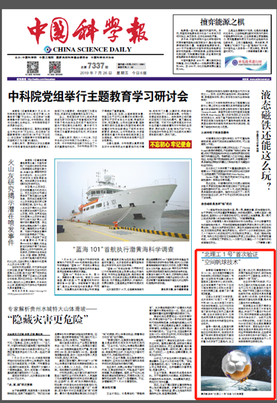 【中国科学报】“北理工1号”首次验证“空间帆球技术”
