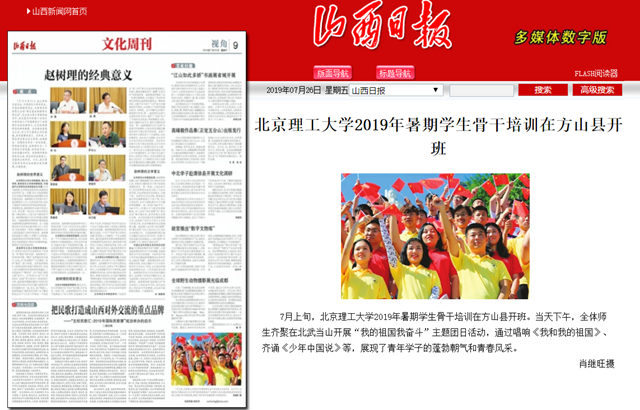 【山西日报】44118太阳成城集团2019年暑期学生骨干培训在方山县开班