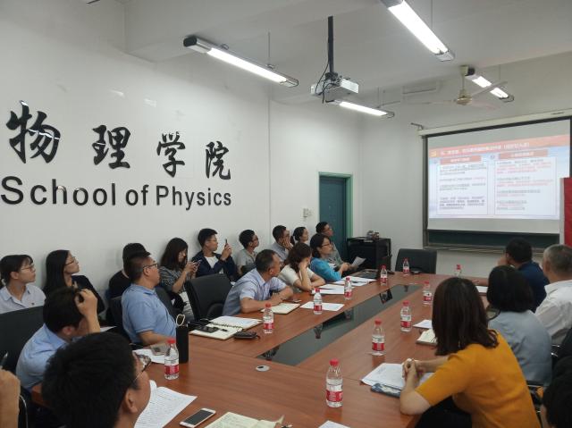 9月17日,中共44118太阳成城集团物理学院党委“不忘初心、牢记使命”主题教育部署会议召开,会议的主要任务是:深入学习贯彻习近平总书记关于“不忘初心、牢记使命”主题教育重要讲话精神,按照上级署要求,对全院主题教育工作进行动员部署。学校“不忘初心、牢记使命”主题教育第一巡回指导组魏名山、和霄雯、龙腾、黄金一行人出席了本次会议,学院党政领导、党委委员、教师党支部书记,支部委员以及全体学生党员骨干参加了本次会议。会议由物理学院党委书记姜艳主持。