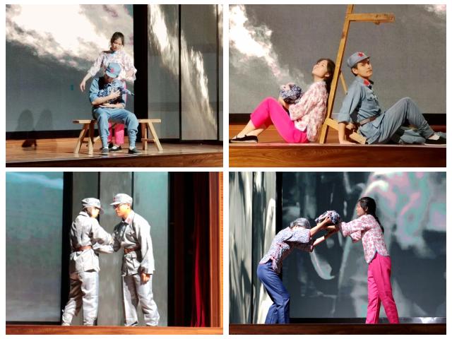话剧展演于19:00准时开始,共分为《序》《井冈儿女》《星火凌云》《青谷长歌》《十送红军》和《尾声》六个部分,以一位革命战士后代读家书、回忆父辈故事的方式再现了革命战争时期共产党人为民族解放而浴血战斗的故事和井冈人民与工农红军的鱼水之情。小丹饰演者黄沁怡,秋生饰演者张云瑞以及其他参演人员用饱满的热情和投入的演出向观众传达了老一辈革命者心怀理想,不畏艰险,为民族解放而不懈奋斗的精神与情怀。