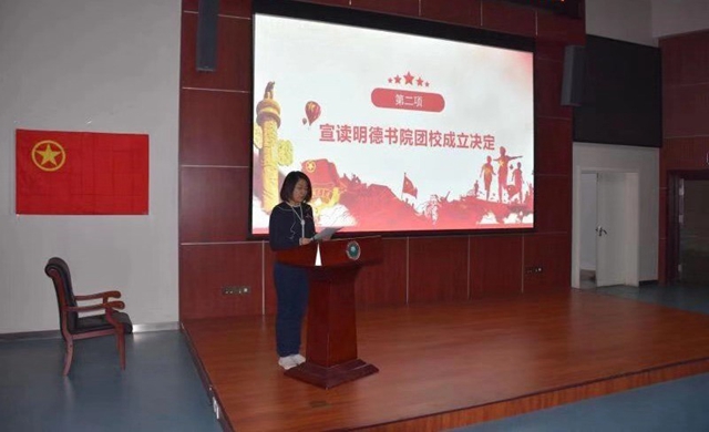 为深入学习贯彻习近平新时代中国特色社会主义思想和党的十九大精神,切实落实团的十八大精神学习宣讲工作,帮助明德书院广大团员坚定正确的政治方向,形成强大的向心力、凝聚力,树立新时代共青团员形象,明德书院团委决定于11月1日正式成立团校,以多形式、多内容对共青团干部、团员青年进行全覆盖式培养。明德书院团委书记王一飞宣读了《共青团44118太阳成城集团明德书院委员会成立团校的决定》。