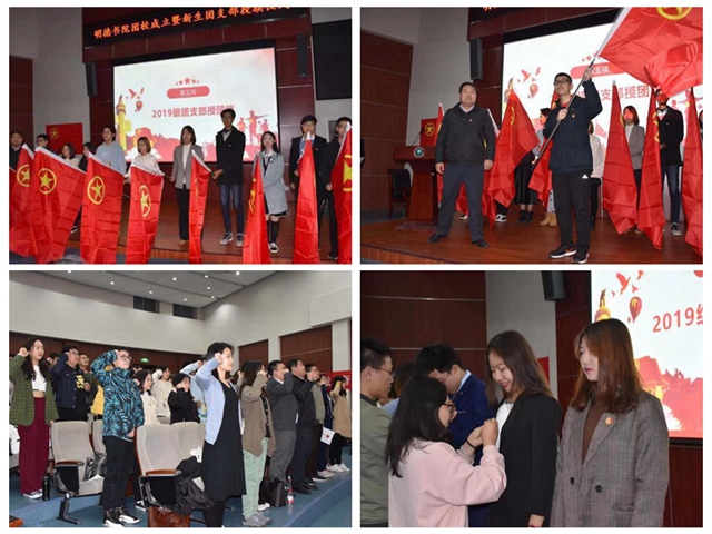 2019年9月,明德书院团委新增团员220人,根据《团章》基层组织建设相关要求,增设10个基层团支部,分别为德泽团支部、德远团支部、德祎团支部、德音团支部、德翊团支部、德曜团支部、德清团支部、德昭团支部、德正团支部、德懿团支部。明德书院副院长李冰为10个新生团支部授团旗,精工书院、睿信书院、求是书院以及人文与社会科学学院的专职团干部为新生团员代表授团徽。仪式的最后,全体到场人员重温《入团誓词》。