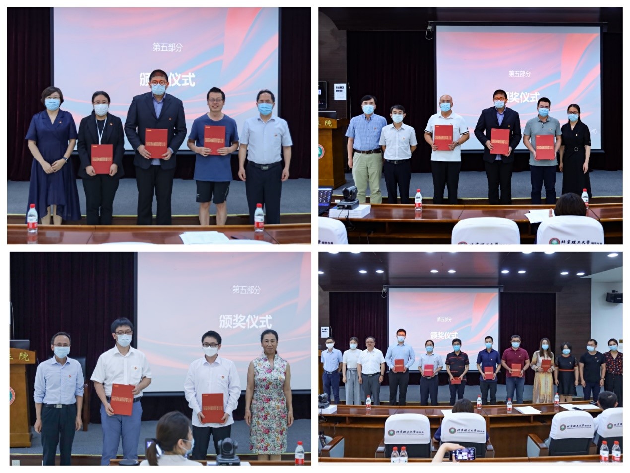 院长、党委副书记夏元清宣读了《关于表彰先进党支部、优秀共产党员、优秀党支部书记和抗疫先锋的决定》。与会学院领导为导航制导与控制研究所教工党支部等5个先进党支部、黄腾等8名优秀党支部书记、盖希娟等20名优秀共产党员、马宏宾等5名抗“疫”先锋中参会的受表彰集体和个人颁发了证书。