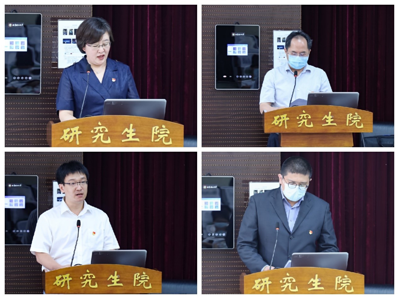 模式识别与智能系统研究所教工党支部书记辛斌、智能信息处理与控制博士党支部书记黄腾分别作为师生党员代表作了交流发言。