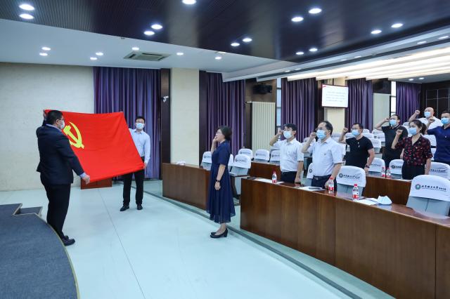 大会最后,在场全体党员面向党旗重温了入党誓词。庆祝大会在雄壮的《国际歌》歌声中落下帷幕。