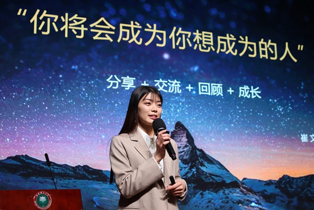优秀研究生代表崔文向大家分享了她干货满满的奋斗历程。崔文结合实际案例、个人收获,从专业实践、竞赛参与、学习心态等角度与同学们进行了分享,同学们受益匪浅。