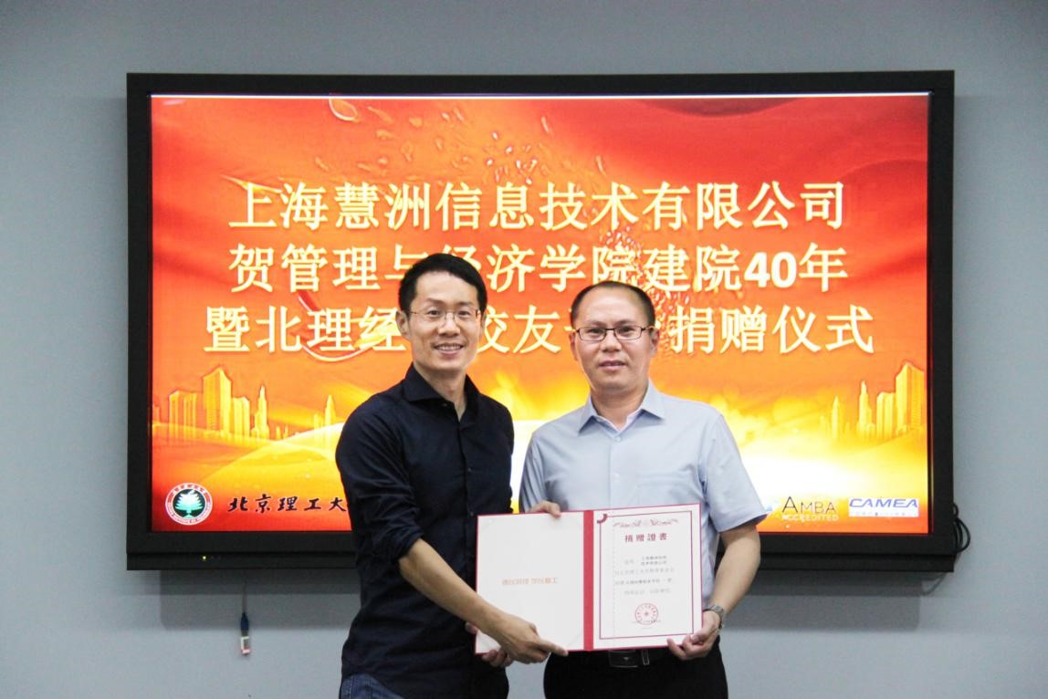 上海慧洲信息技术有限公司贺北理工管理与经济学院建院40周年暨校友平台捐赠仪式成功举办