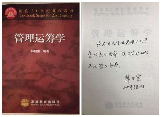 韩伯棠赠予新入职青年教师的第一版《管理运筹学》